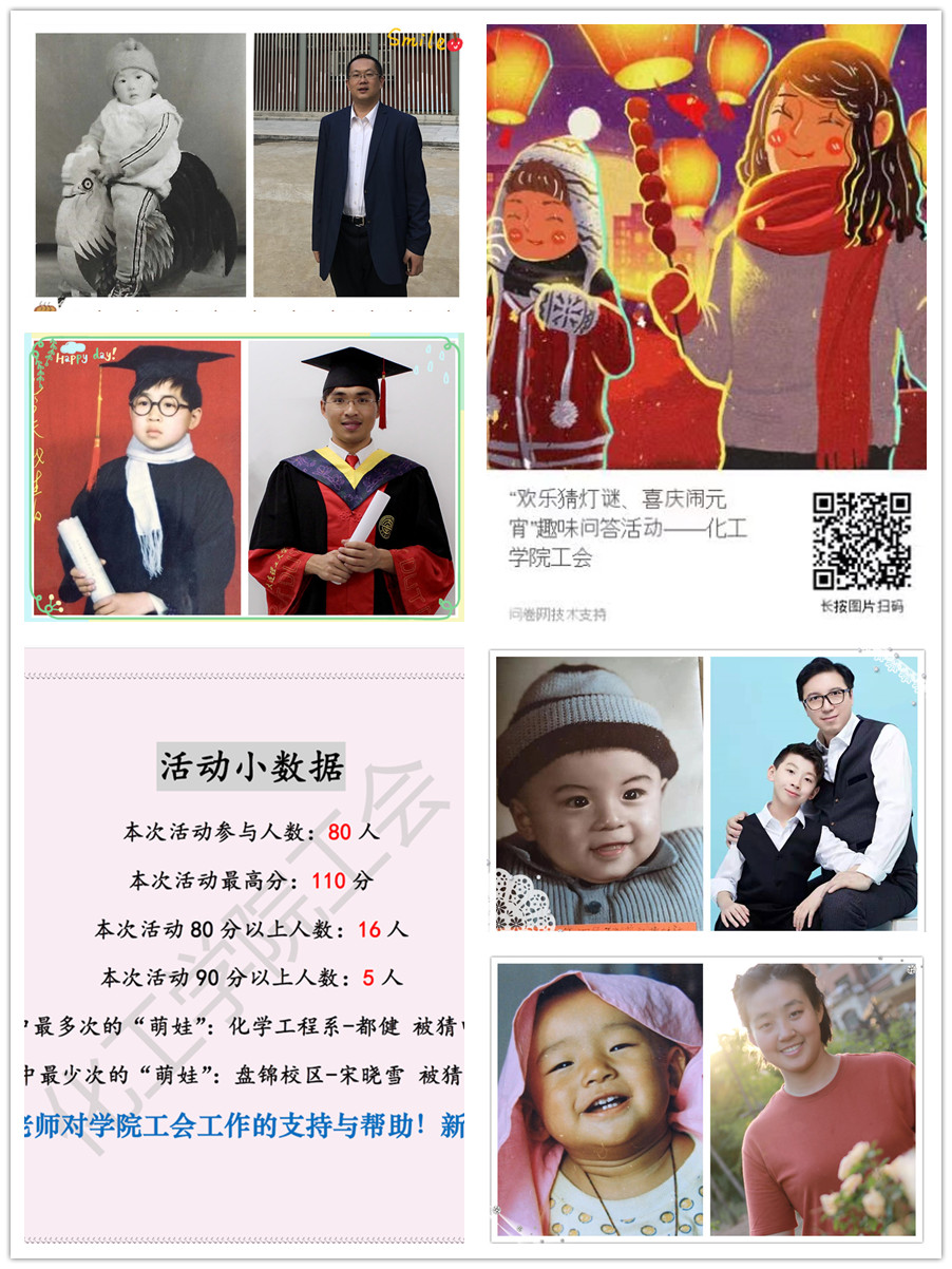 锣鼓喧天庆佳节,万众欢腾闹元宵。为营造良好的节日文化气氛,弘扬我国的优秀传统文化,感受元宵节的喜庆气氛,在正月十五元宵节来临之际,学院工会举办了一场别开生面的趣味问答活动——庆元宵猜萌照活动。学院工会收集到了12位老师的童年照,通过网上问卷的形式开展。学院教师纷纷提交答案,共有近百人参与,期待谜底揭晓。正月十六,学院工会将谜底发布,大家喜笑颜开“还是可以找到童年的样子”。在热热闹闹、快快乐乐过元宵的同时,学院教职工拉近彼此的距离,度过了丰富愉快的元宵佳节。