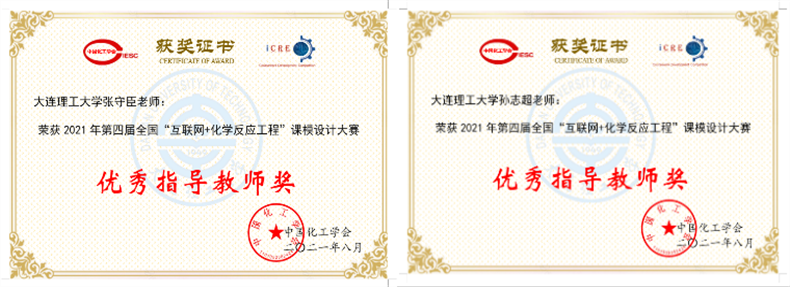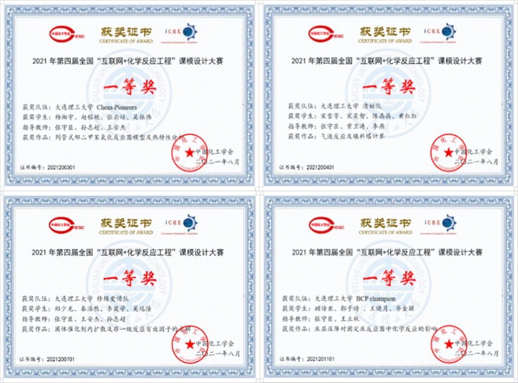 2021年8月24日,由中国化工学会主办,大连理工大学承办的第四届全国“互联网+化学反应工程”课模设计大赛落下帷幕。本届比赛共有85所高校的345支队伍报名参赛。114份优秀作品脱颖而出,其中包括一等奖17名,二等奖33名,三等奖57名,鼓励奖7名。我校化工学院学子获得一等奖4项、二等奖2项、三等奖3项,指导教师有张守臣、孙志超、王安杰、贡卫涛、李燕、王立秋、田朋和李琳等;我校获得了最佳组织奖,张守臣、孙志超两位教师获得了优秀指导教师奖。
