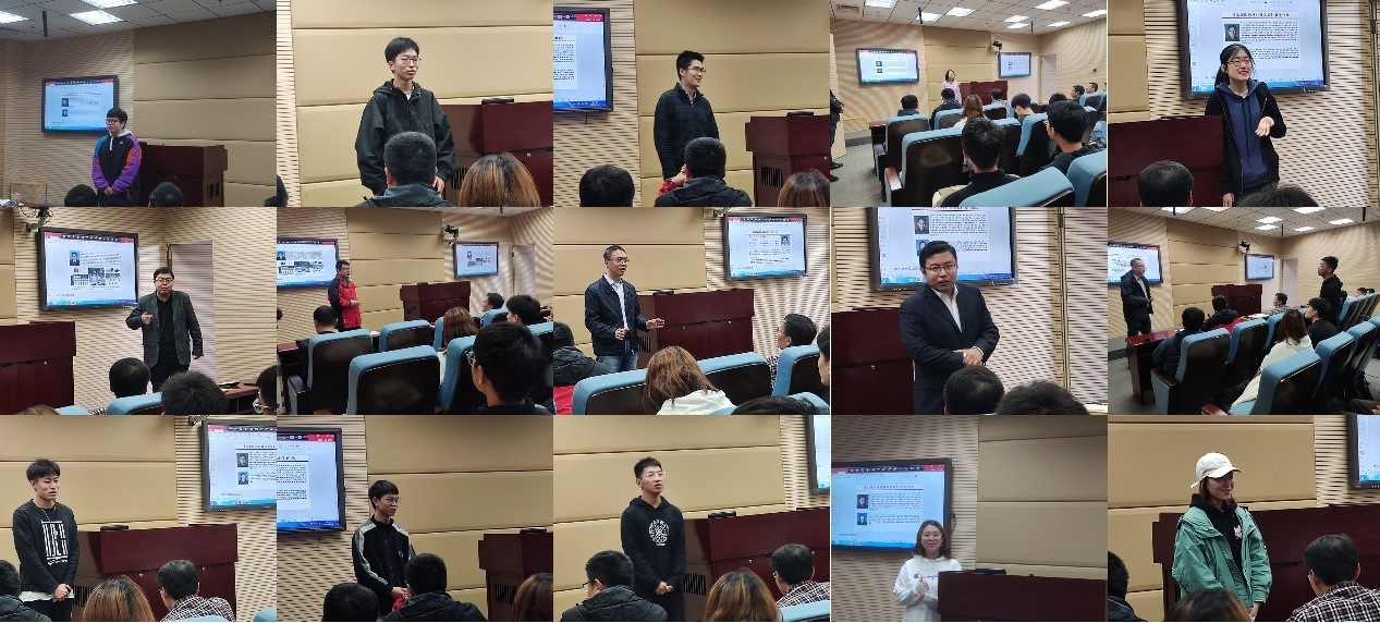 师生见面会和互动交流环节,各位任课老师介绍了相关课程内容,同学们也分别做了自我介绍,并提出了自己的感兴趣的研究领域。师生针对化工新材料创新实践班的培养方式、课程安排、个人职业规划等问题进行了讨论和交流。