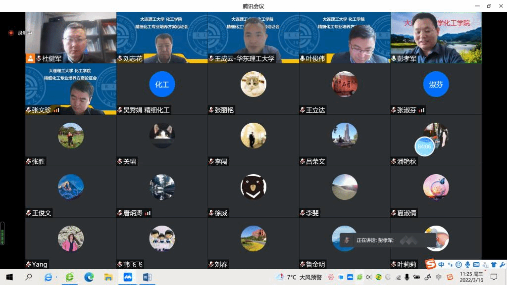 根据国务院学位委员会《学士学位授权与授予管理办法》、《关于做好本科层次职业学校学士学位授权与授予工作的意见》及 《辽宁省学士学位授权与授予管理办法》等相关文件精神,为规范学位授权与授予,保证高校人才培养和学士学位授予质量,2022年3月16日上午,大连理工大学化工学院通过线上会议的方式,组织召开了2022年新授予学士学位专业精细化工专业评审会议。教育部化工类专业教育指导委员会秘书长、天津大学化工学院副院长夏淑倩教授,华东理工大学精细化工系主任王成云教授,太原理工大学化学化工学院副院长王俊文教授,万华化学集团股份有限公司高级副总裁陈毅峰教授,中化集团沈阳化工研究院院长胥维昌教授,大连理工大学化工学院潘艳秋教授和张淑芬教授等7位专家参与评审,大连理工大学教务处处长刘志军、化工学院院长彭孝军、精细化工系主任张文珍、副系主任杜健军、教研室主任及多位化工学院骨干教师代表等参与了此次评审会议,会议由化工学院副院长叶俊伟主持。