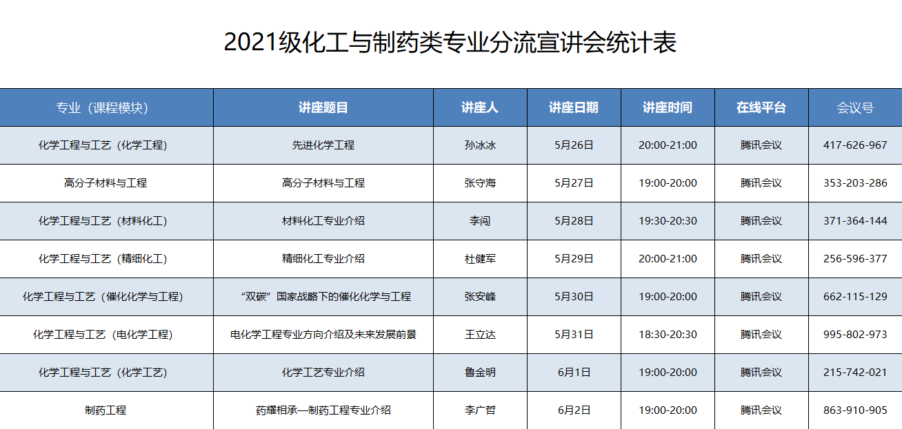 为帮助化工与制药类学生更好地选择专业,了解各专业领域和发展前景,化工学院每年都要在大类专业分流前组织宣讲会。2022年5月下旬,学院教务办邀请各专业(方向)做了8场专题讲座,本次集中宣讲将更有利于学生合理选择感兴趣的专业。