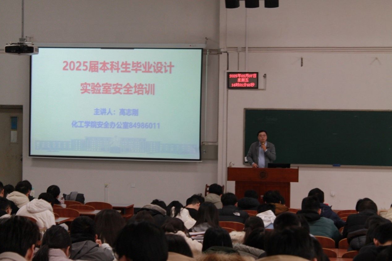 为保障2025届本科毕业设计(论文)工作的顺利进行,化工学院面向全体毕业生开展了学院、系、导师课题组三级教育培训,旨在强化学生安全意识,规范科研实验和毕业设计(论文)写作流程,加强本科毕业设计(论文)的高效管理,切实提高本科毕业设计(论文)的质量水平。3月7日下午,化工学院在综合教学二号楼B101报告厅召开了2025届本科生毕业设计(论文)动员及安全教育会。化工学院副院长李琳教授、院长助理高志刚高级工程师、教务员以及2025届本科毕业生参会,会议由化工学院副院长李琳教授主持。