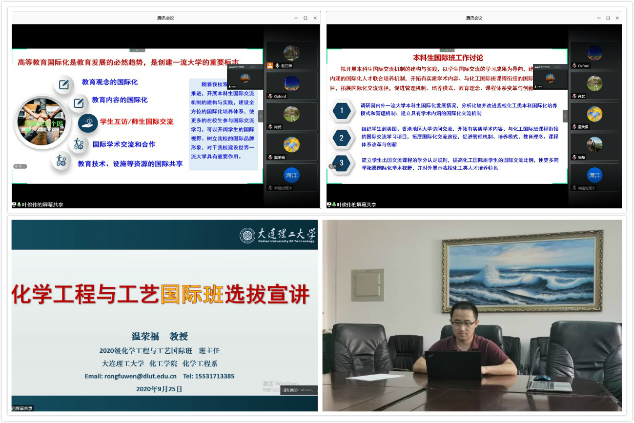为做好本次选拔工作,学院副院长叶俊伟教授于9月23日组织召开国际班建设工作研讨会,进一步阐明国际班建设发展的努力方向并对本次选拔工作提出了具体要求,2017级-2020级国际班班主任和任课教师代表对国际班的建设发展提出了建议和意见。9月25日,在教务办和学办的密切配合下,2020级国际班班主任温荣福教授在线选拔宣讲,化工与制药类学生线上线下同时报名并积极准备面试。